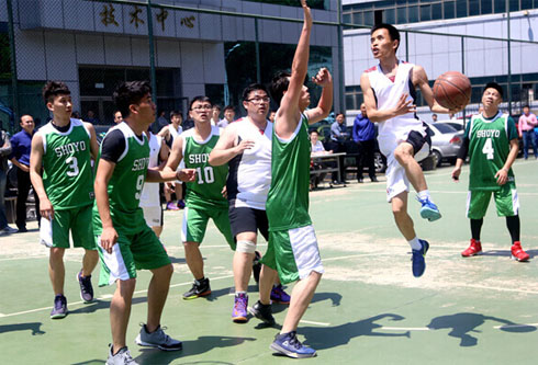 6月3日中午,宁波市江北宁动木制品有限公司2016年职工篮球比赛上演巅峰对决。
